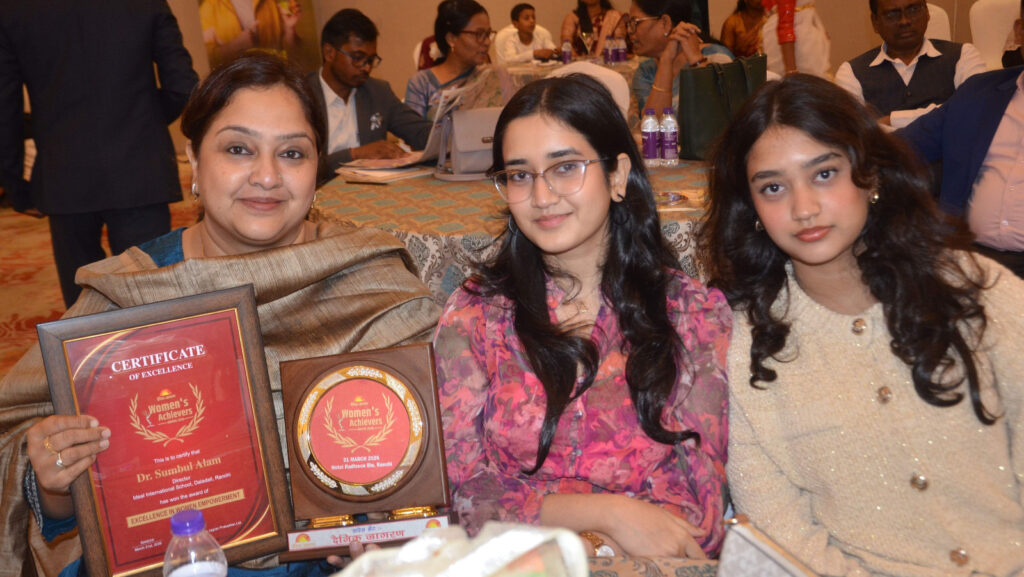 Dr. Sumbul Alam, Director of Ideal International School, Daladali, Ranchi, was honored with the Women Achiever Award for her remarkable contribution to the field of education. The award was presented by Jharkhand Minister Deepika Pandey Singh at Radisson Blu Hotel Ranchi.